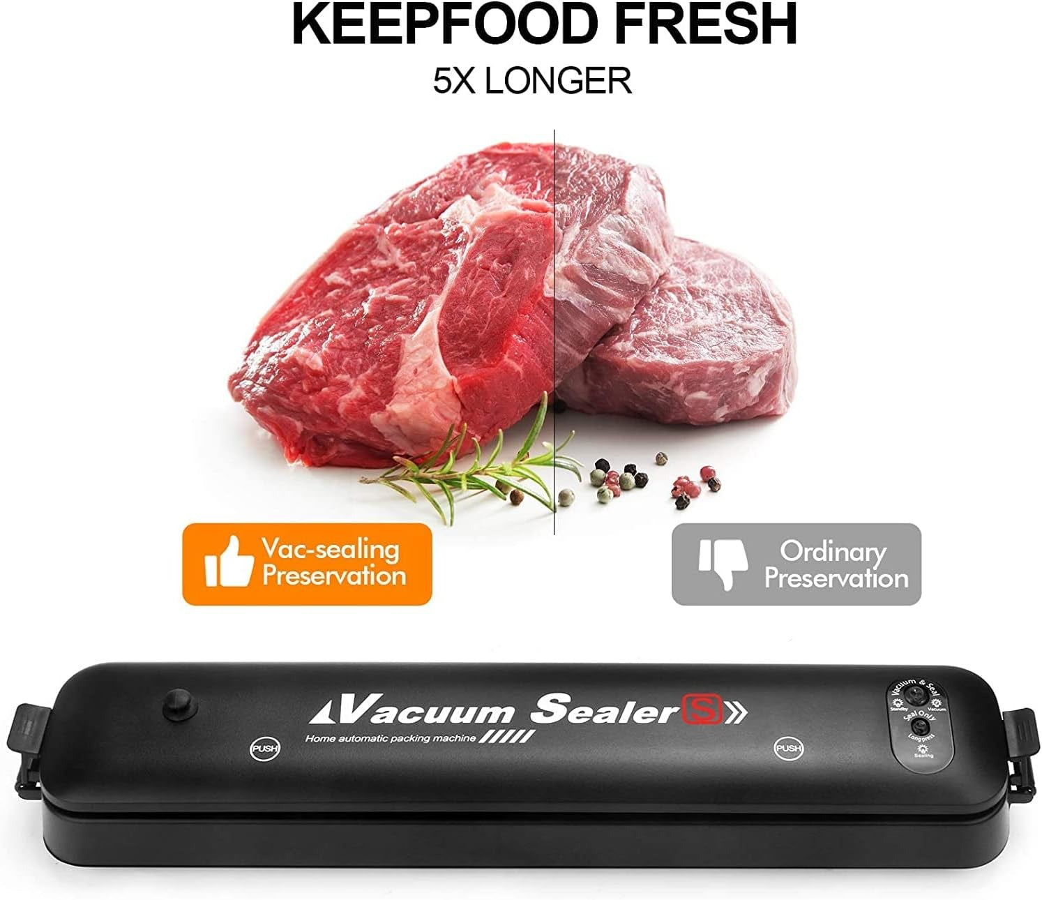 ✔ 3-in-1 Functionality (Vacuum, Seal, Vacuum & Seal) – Lets you choose between sealing only, vacuuming only, or performing both for optimal food preservation.