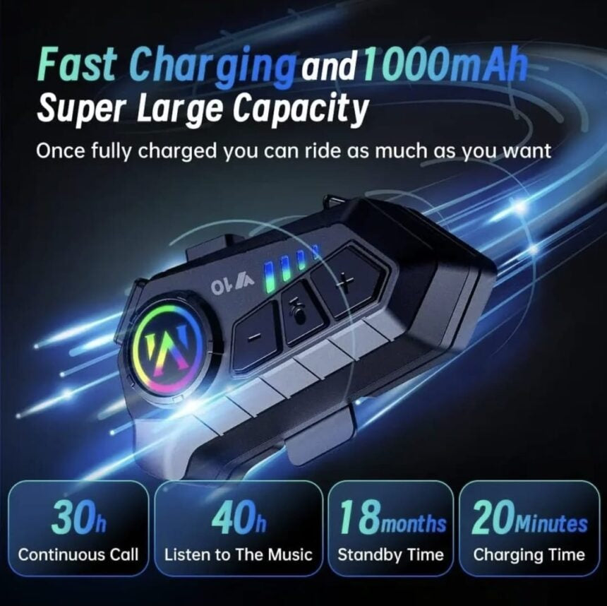 سماعة رأس Y10 لخوذة الدراجة النارية، بلوتوث 5.3، تحكم صوتي، سماعة رأس لاسلكية للتحدث باليد، مقاومة للماء